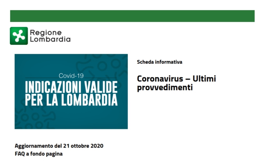 COVID-19   Indicazioni valide per Regione lombardia